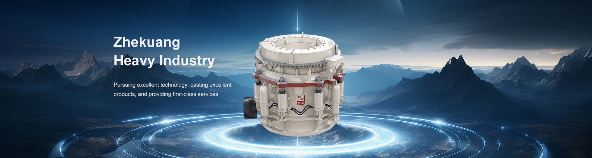 多缸液壓圓錐式破碎機(jī)工作時(shí)動(dòng)錐沿著內(nèi)部偏心軸做旋擺運(yùn)動(dòng),靠近定錐的地方,物料受到動(dòng)錐的擠壓和彎曲而破碎,偏離動(dòng)錐的地方,已破碎的物料由于重力作用從錐底下落,整個(gè)破碎和排料過程沿著定錐和動(dòng)錐之間的破碎腔連續(xù)依次進(jìn)行。機(jī)體外圍均勻分布若干液壓油缸和蓄能器,結(jié)合閥和管路起到過鐵保護(hù)和清理破碎腔的作用。